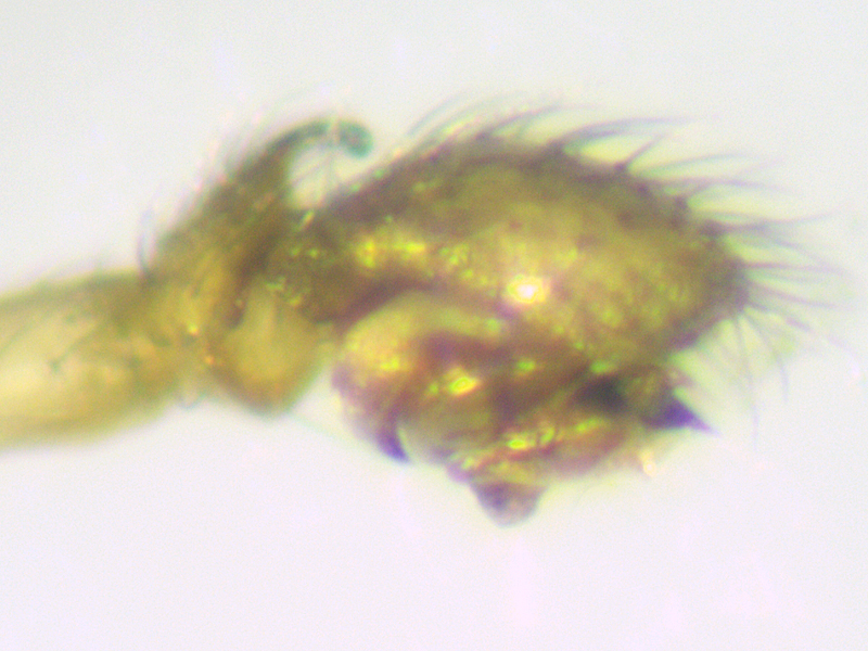 second male Oedothorax apicatus showing head from side and pedipalp, Wendling Beck Environment Project (Norfolk, UK), 25th-26th August 2025
