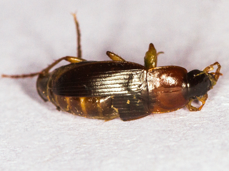 Although this one predated the two above, I examined it after those and immediately suspected it was another cinctus. In this case the head and elytra were clearly brownish, however they do not appear particularly so in the live photo (admittedly poor quality) and it is possible that they faded after death (the contents of this pitfall trap had been a bit damp so I'd left them to dry out on my sunny windowsill for a while to prevent them from going mouldy). The elytral humeri lacked teeth and the genitalia clinched it.