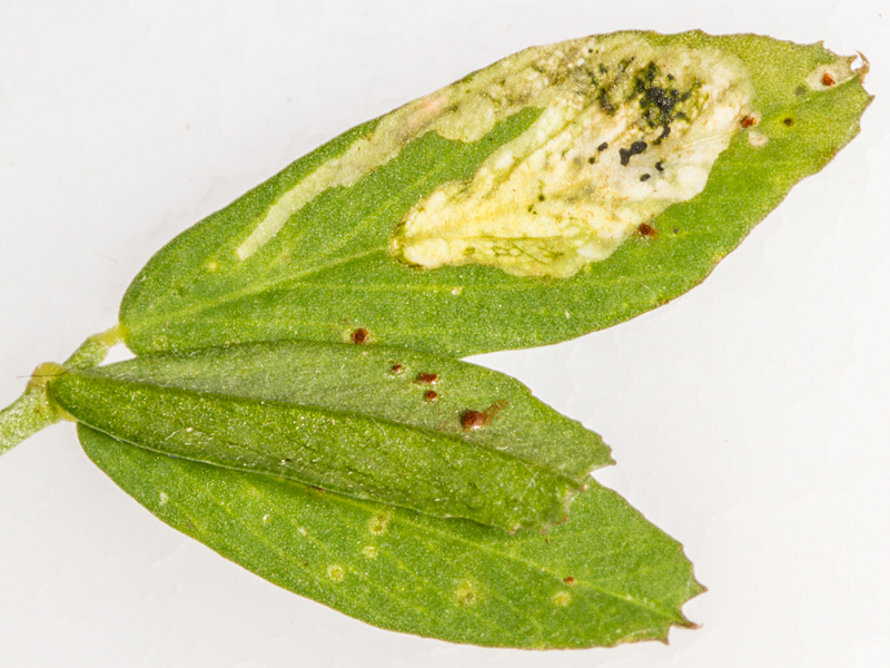 This leaf-mine was one of at least two found in Lucerne Medicago sativa.