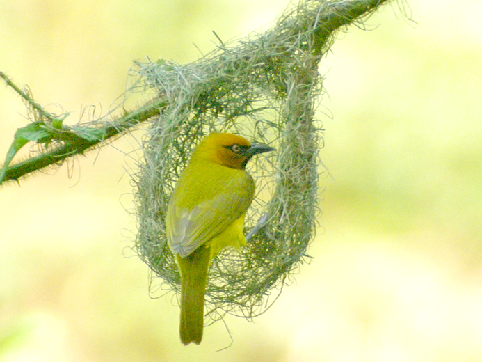 Spectacled Weaver building a nest on the Zomba Plateau (Malawi)