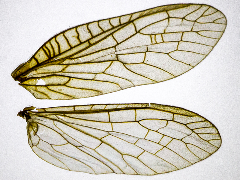male Sialis lutaria showing wings and views of the end of the abdomen (side views before and after clearing and close-up, and caudal and dorsal views), Wendling Beck Environment Project (Norfolk, UK), 17th May 2024