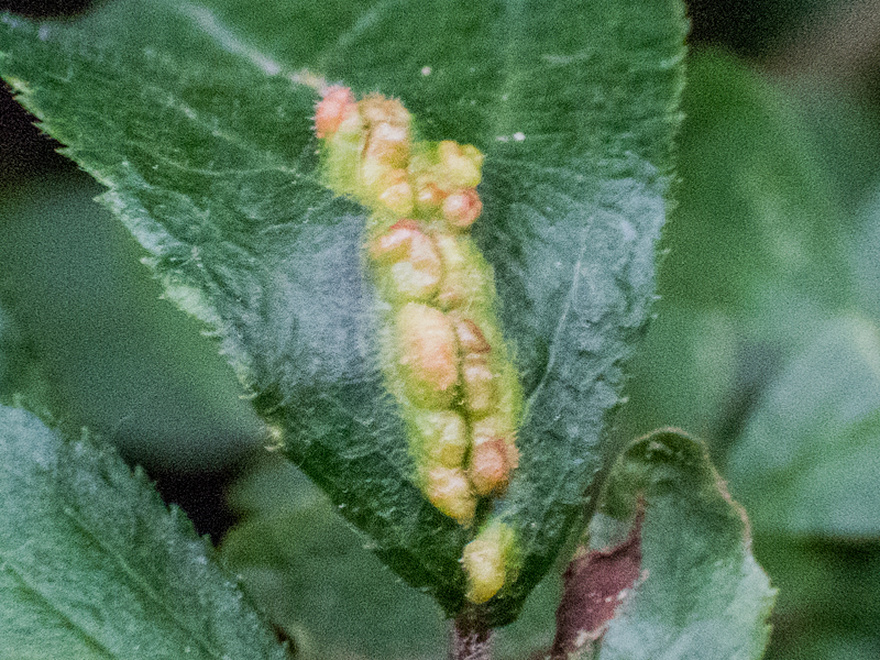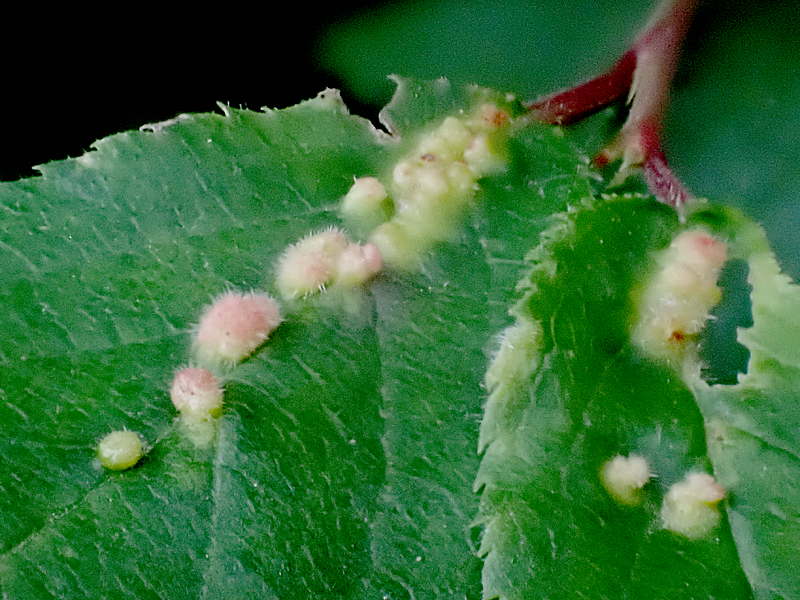 Eriophyes homophyllus in galls on Blackthorn, Wendling Beck Environment Project (Norfolk, UK), 9th June 2025