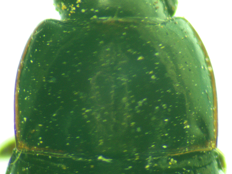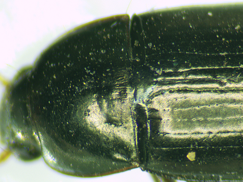 Amara tibialis showing pronotum base and scutellar striae (both sides), Wendling Beck Environment Project (Norfolk, UK), 4th-5th April 2025