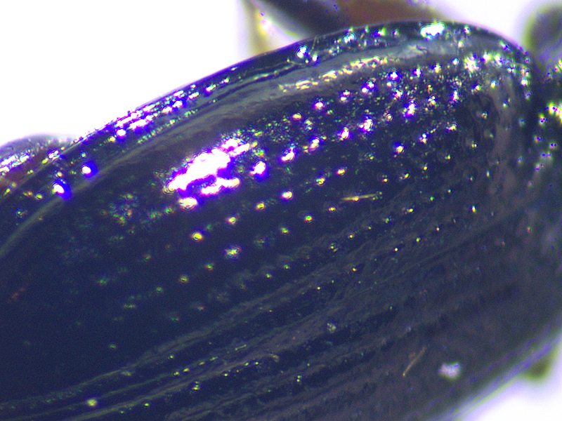 female Bembidion lampros showing frontal grooves, elytral striae on both sides and spermatheca, North Elmham (Norfolk, UK), 27th April 2023