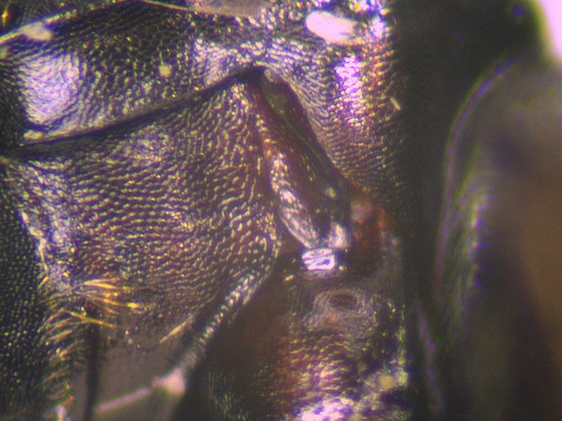 I initially used Lott to key this and arrived at Bledius gallicus, but there were a couple of points where I wasn't convinced so I had another go using Duff. This time I arrived at a choice between opacus and pallipes, with Duff indicating that these two species are only safely separated on male genitalic characters. I also tried using Hackston, and this also led to opacus. Lott had sent me down the route to gallicus rather than opacus based on my interpretation of the pronotum shape, the differences in which seemed pretty subtle. Both Duff and Hackston eliminated gallicus on account of the open fore coxal fissure. Once I'd worked out what that was, which wasn't immediately obvious to me even with the diagram in Duff, this seemed pretty black-and-white which meant that gallicus was certainly wrong. Returning to the couplet where I'd therefore gone wrong using Lott, taking the alternative option took me to opacus there too. So in the end, I'm happy that it's opacus, with the caveat that according to Duff I cannot eliminate pallipes (as it was a female). So far as I know there are no records of pallipes in Norfolk, whereas I believe opacus is the species of Bledius with the most records, so at this point it seems pragmatic to assume it is opacus not pallipes.