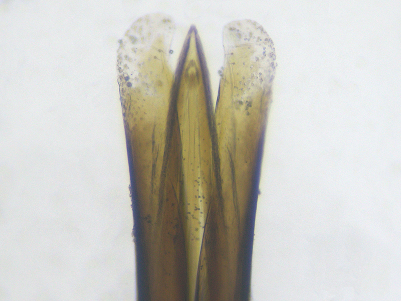 The next two were caught on the same night as the last, but in a slightly different place. They came to light. The first one keyed to marinus fairly straightforwardly. It was 2.7mm long.