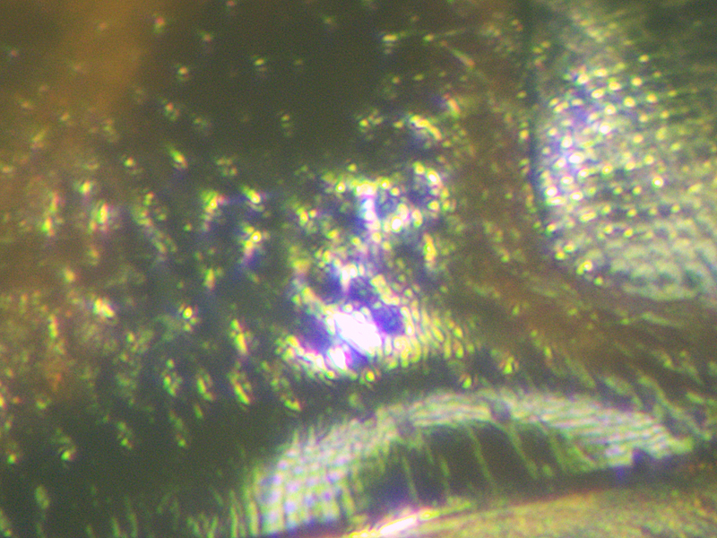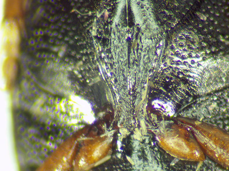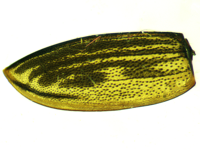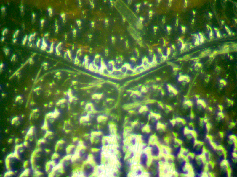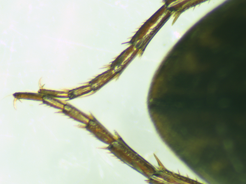 This one was also 4.6mm long and keyed to Laccophilus easily. The area where there should have been a stridulatory file had it been Laccophilus hyalinus wasn't entirely smooth (as Duff says it should be for minutus), but neither was there anything resembling a stridulatory file. Hackston descibes additional differences including in the microsculpture of the head and I think these supported the ID as minutus. The pattern on the elytra was much easier to see when an elytron was detached and viewed backlit.