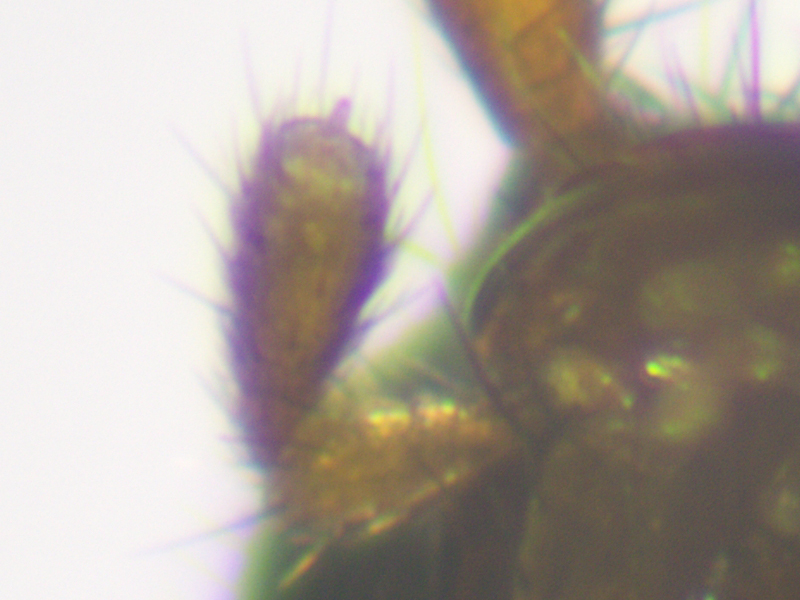 I caught four more of these two nights later at another site within the same project area. This time one was a male, enabling the identification to be checked against an additional character. The 8th sternite was visible without dissecting the insect but wasn't very east to see, so I cleared the abdomen for a better look. It was also useful to see the long black hairs and short dense black hairs lining the apex of what I think must be the 7th sternite, a feature that will probably serve to enable the insects to be sexed without dissecting them.