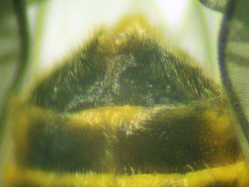 I was pretty sure this was marginatus when looking at the genital segment on the dried specimen but it was a bit difficult to be sure if the tips of sternite 9 were expanded or not. After a quick soak in potassium hydroxide this became obvious.
