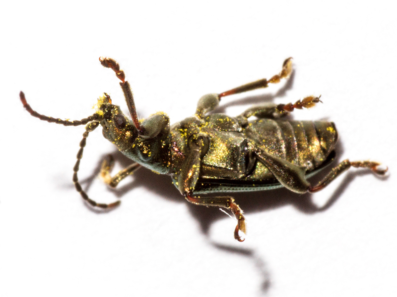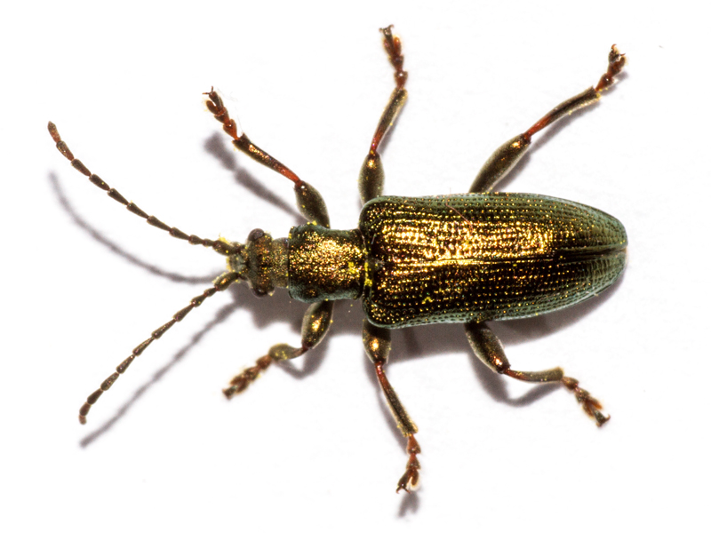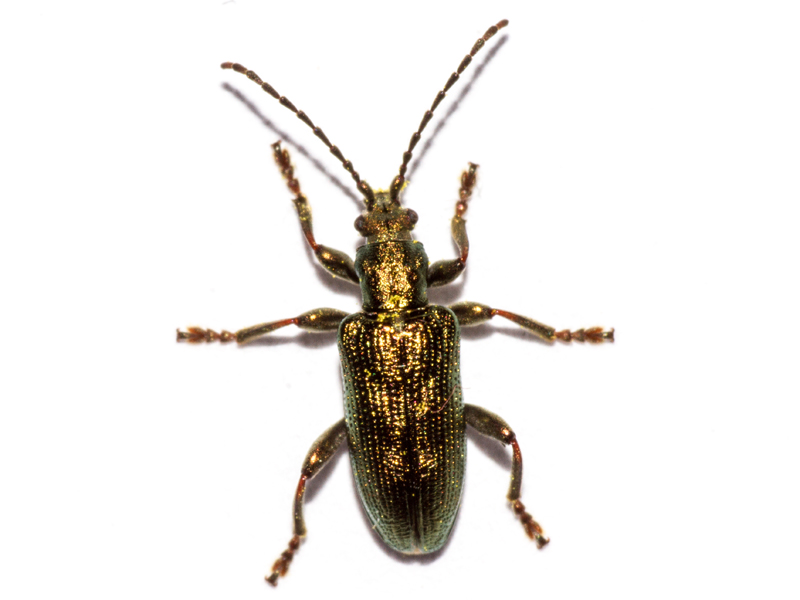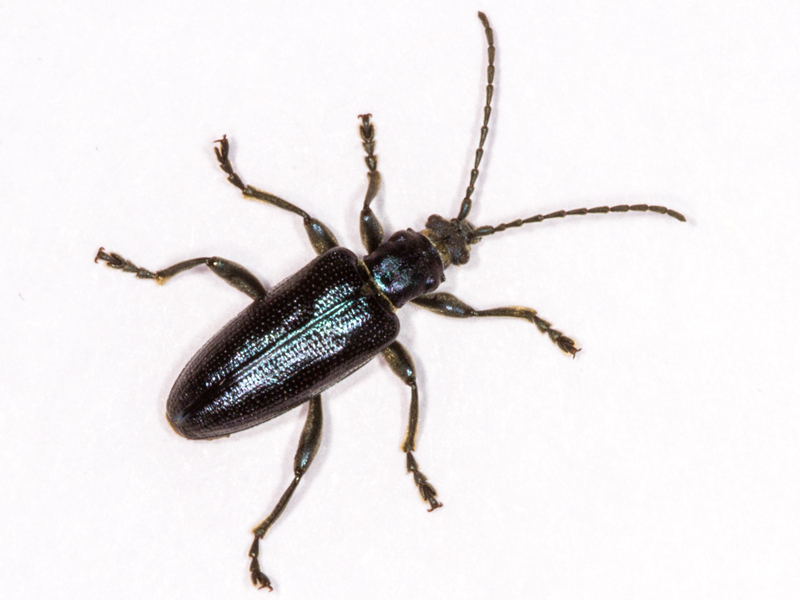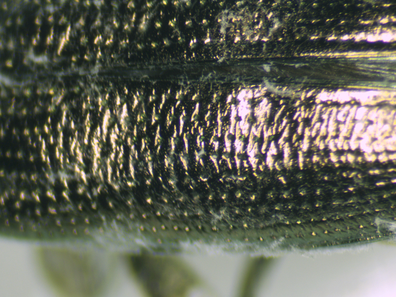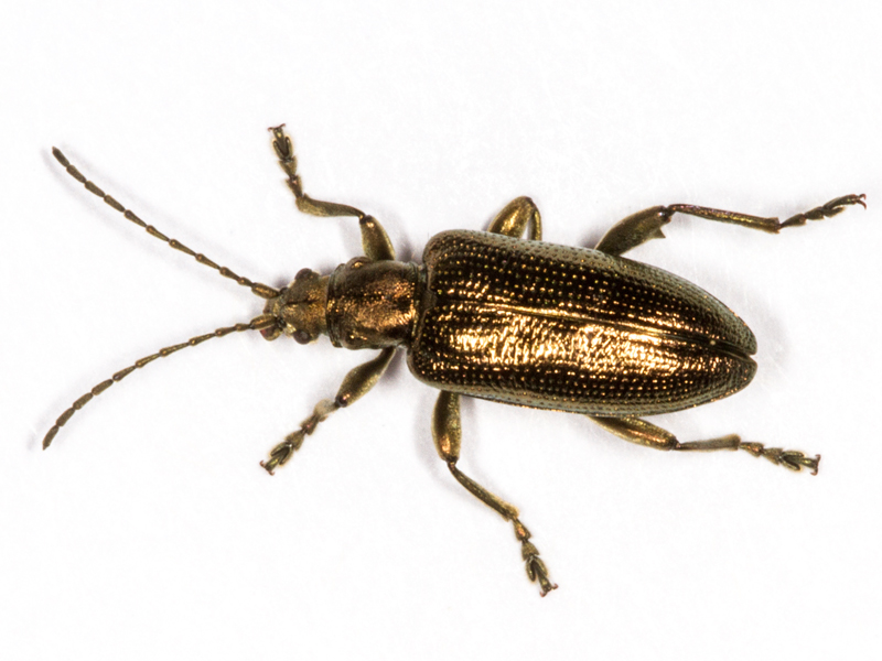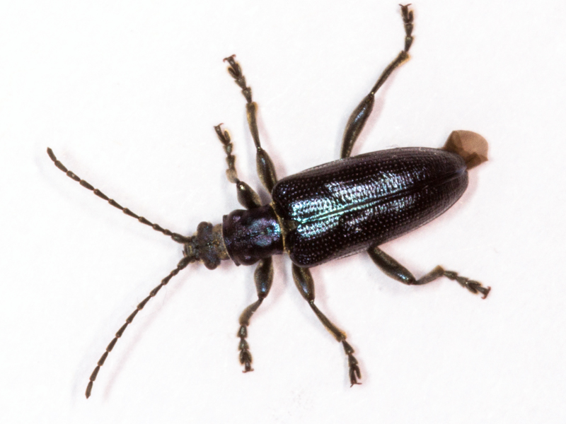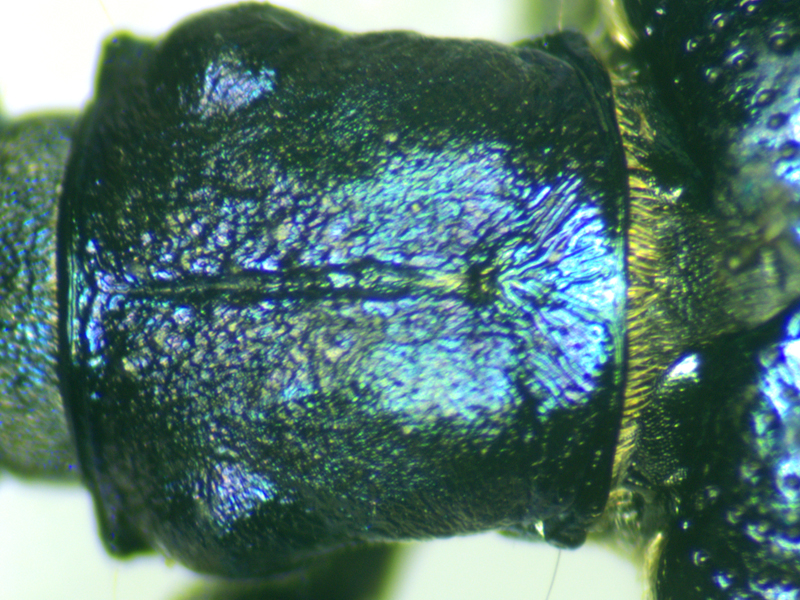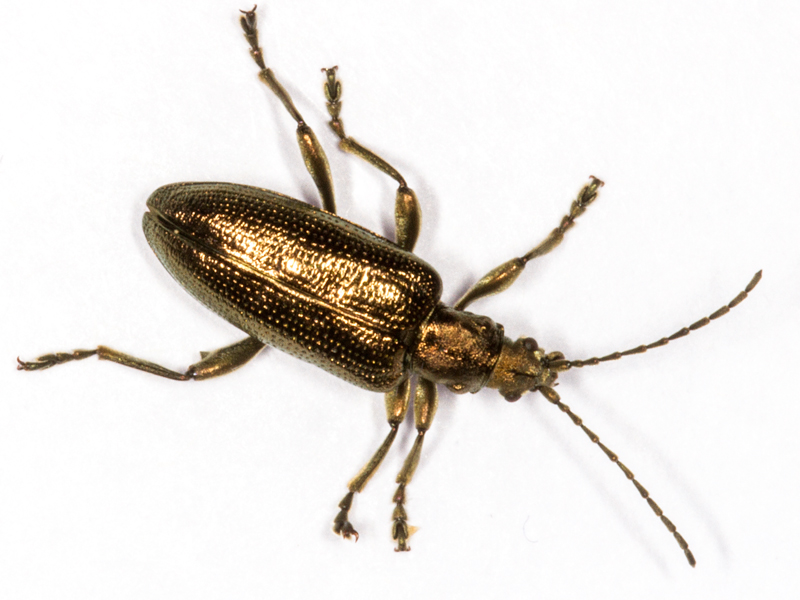 The next two were found on or around Yellow Flag Iris (there were two of the dark blue types but I only retained one). I attempted to key them before realising that the plant was a significant clue, and without being certain whether or not they were both the same species. They both keyed easily to Plateumaris discolor/sericea using Duff but telling these apart was a bit trickier. There seemed to be some minor differences in the pronotum sculpture between the two individuals and also the relative lengths of the first four antennal segments, both important characters for telling the two apart, but neither seemed to match discolor well - though at first I wasn't convinced they matched sericea perfectly either. Hackston added a difference in the colour of the hairs on the underparts. The golden hairs on the blue beetle stood out, whereas on the golden-brown beetle they were harder to see as they blended in against the very similar background colour, but although the overall appearance was different because of the different background colours, the actual colour of the hairs was the exactly the same.