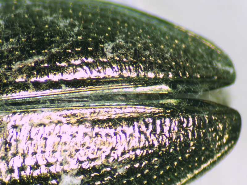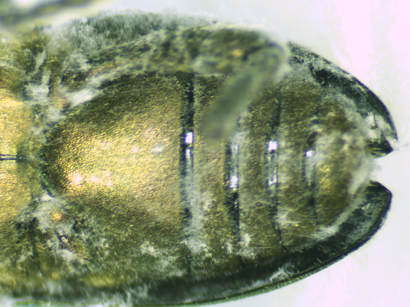 male and female Plateumaris sericea showing elytral apices with inverted suture, sternites, elytral depressions, pronotums, antennae (first four segments), hairs on sternite sides and genitalia (aedeagus of male, unknown part of female and spermatheca of female), Wendling Beck Environment Project (Norfolk, UK), 4th June 2025