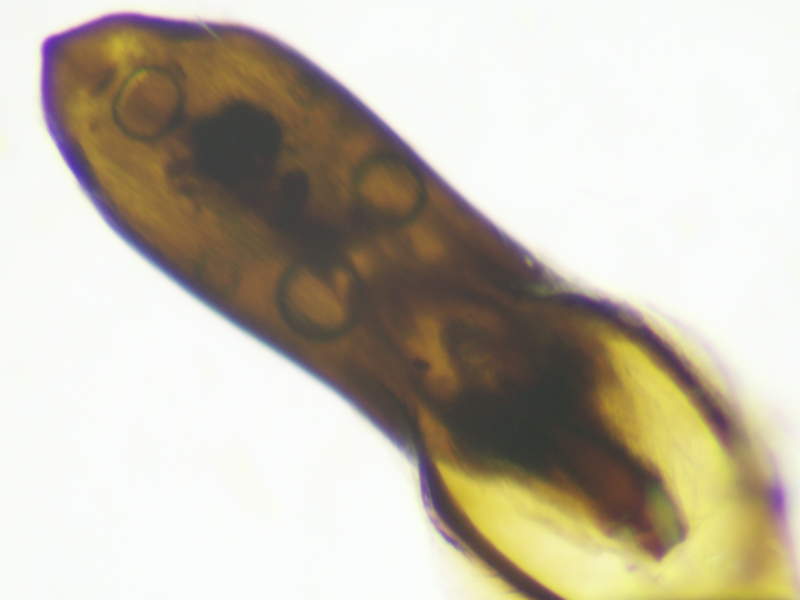 I had pretty much settled on both being sericea before checking the genitalia. I checked the blue one first, a male, which confirmed sericea. The golden-brown one also contained a structure that looked uncannily similar to an aedeagus to me but it didn't match any of the Plateumaris aedeagi so I wondered if it might in fact be a female part. This was confirmed when I fonud the spermatheca. The spermathecae aren't shown for this genus in any of the references I have seen except that European Beetles website coleonet.de shows the spermatheca for Plateumaris consimilis, so this didn't help (or hinder) my ID.