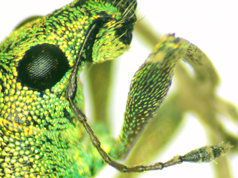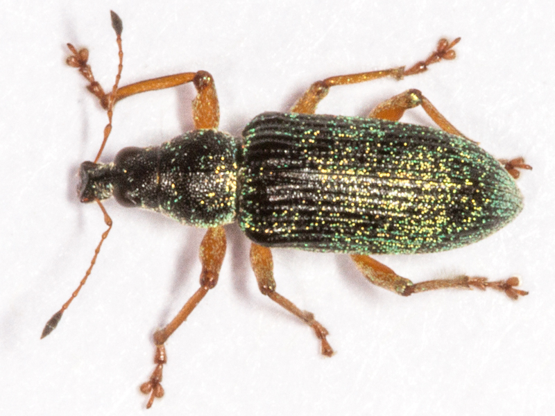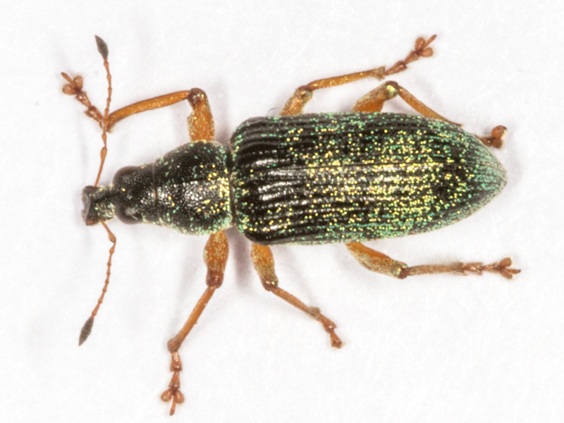 Polydrusus formosus showing rostrum from side and above, head from above, fore femur and elytral scales, Wendling Beck Environment Project (Norfolk, UK), 27th June 2025