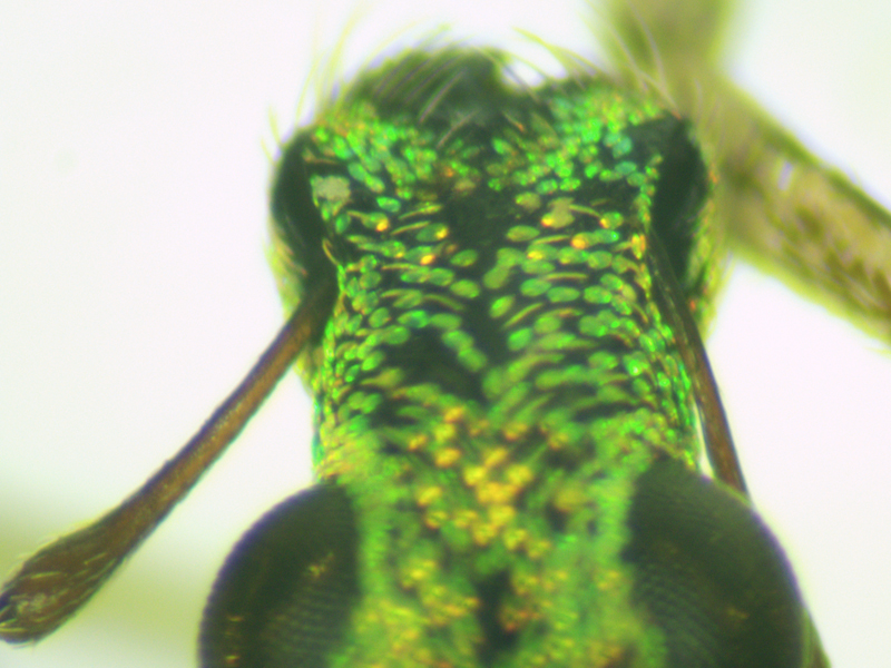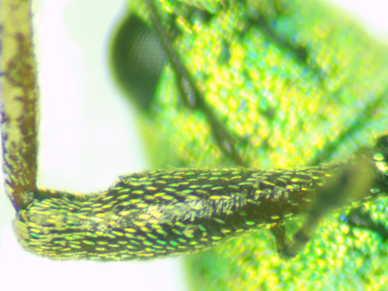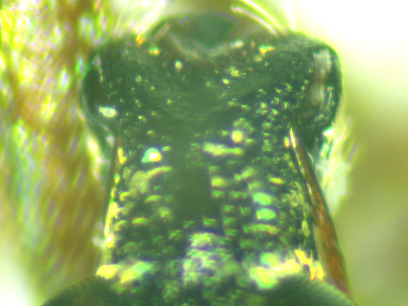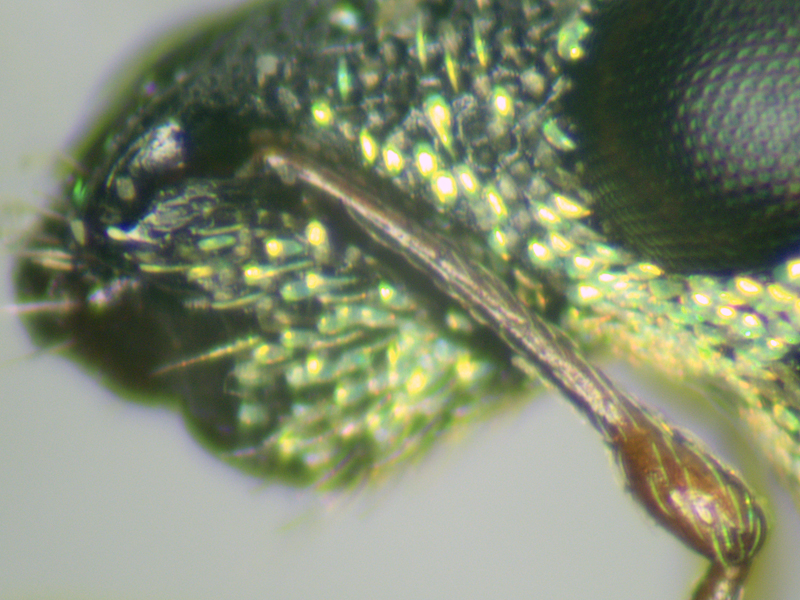 This was swept from a Walnut tree. I keyed it using Duff. Note that the live photos below have come out looking more yellowy-bronze and less green than it looked in life (or in the photos taken through the microscope).
