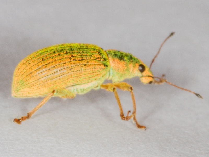 I returned to the same Walnut tree one month later and found another, this time looking a lot more worn than the first. It had a glabrous area between the antennae which made me wonder if it might be Pachyrhinus but that genus should have a transverse ridge whereas this had a vague triangular ridge, or at least angle. It keyed to formosus using Duff. The elytral scales looked more perfectly round than suggested in the key, and comparing them to the set of scales photos in Mark Gurney's guide I thought they matched Polydrusus pterygomalis better, but the head shape ruled that out.