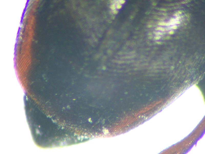Getting it to genus wasn't the end of my troubles... I wasn't convinced the fore tarsi were quite as expanded as shown in the diagram (in Duff) for subvillosus. Duff also provides a ratio between the length and width of the fore tarsus so I measured it on my specimen. I am not sure if you're meant to include the claws when measuring tarsal length but if I did include the claws the ratio was over 3, and if I didn't include the claws the ratio was nearly 2.8. It's supposed to be about 2.5 for subvillosus and more than 3 for medius. Hackston provides an additional character - the shape of the hind tibia, straighter on medius. Mine seemed pretty straight - certainly closer to the diagram in Hackston for medius than for subvillous. But I don't think medius has been recorded in Norfolk so that seems pretty unlikely. The size of the beetle was in range for both species according to Duff, but too big for medius based on the size range given in Hackston. I needed to check the aedeagus and that clearly pointed away from medius - it was subvillosus.