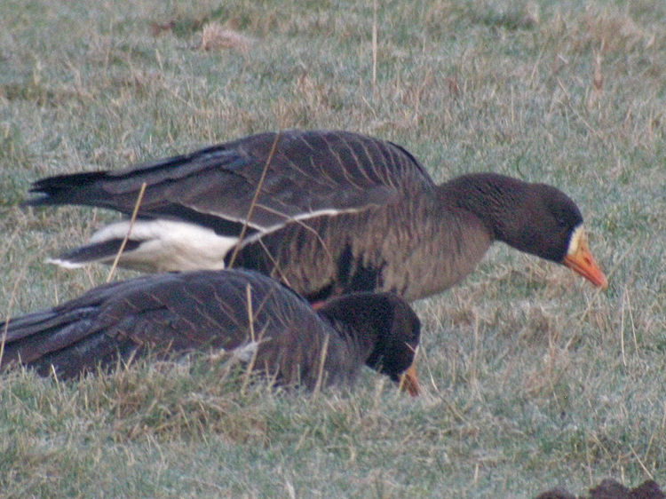 This race of Greater White-fronted Goose, treated by some authorites as a full species, is a rare visitor here in Norfolk but one or two crop up among the Pink-footed Goose flocks most winters and occasionally on their own or with Russian White-fronted Geese.