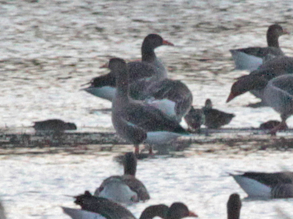 Greylag Goose x Greater White-fronted Goose hybrid (with Greylag Geese), Stiffkey Fen (Norfolk, UK), 9th November 2013
