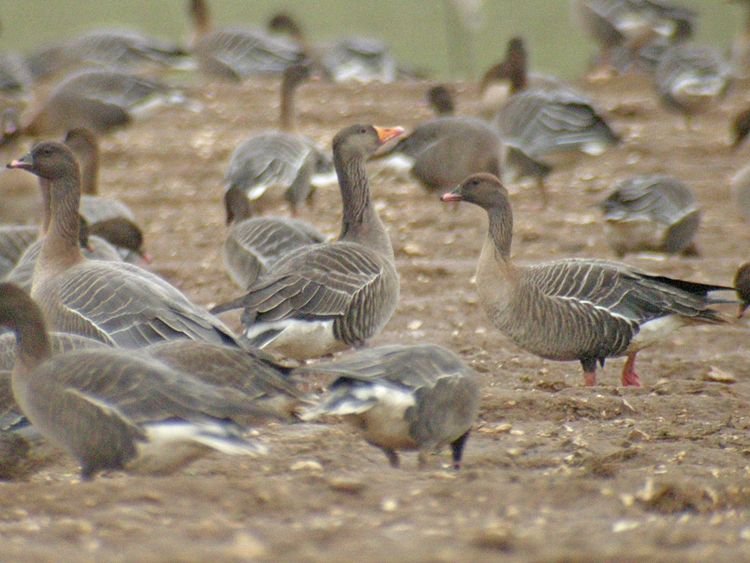 Icelandic Greylag Goose (with Pink-footed Geese), between Amner and Shernborne (Norfolk, UK), 17th January 2011