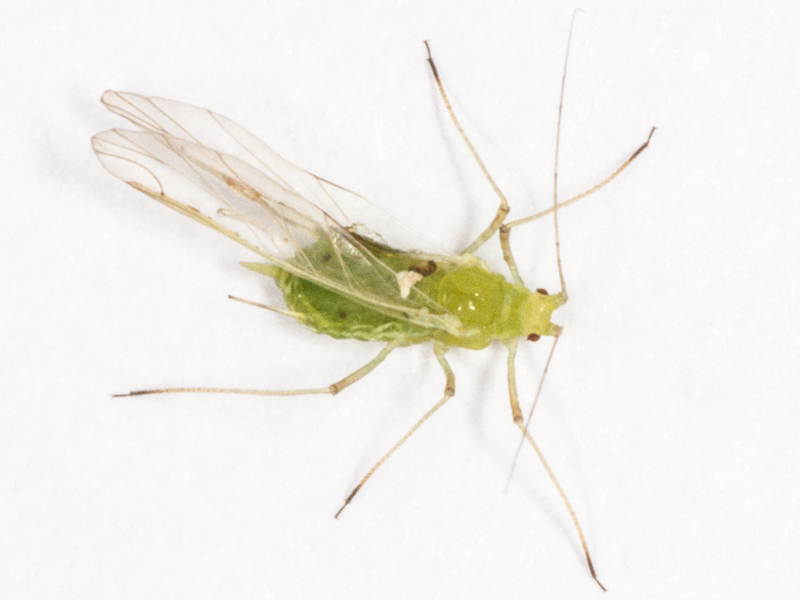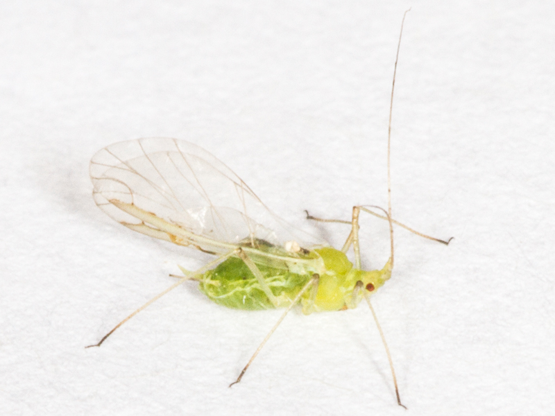 This lone alate was swept from some Lucerne beside a footpath. My usual first line of attack with identifying aphids taken from a known plant is to look at the Influential Points website and identify what species of British aphid occur on that foodplant, and check the pages on that website for each one, eliminating any that are obviously different. That approach narrowed it down to two candidates: Pea Aphid Acyrthosiphon pisum and Blue Alfafa Aphid Acyrthosiphon kondoi. The colour of the antennae seemed better for pisum but the text suggested this may be unreliable, and the photos of pisum were more uniformly green insects lacking the paler yellower foreparts that mine showed. On kondoi there is a change in colour as the foreparts are darker brown, but that didn't really fit my one's paler yellow foreparts. I was also concerned that as I'd just swept a single insect, it was plausible that it had landed on the Lucerne by accident and was not really associated with Lucerne as a foodplant at all.