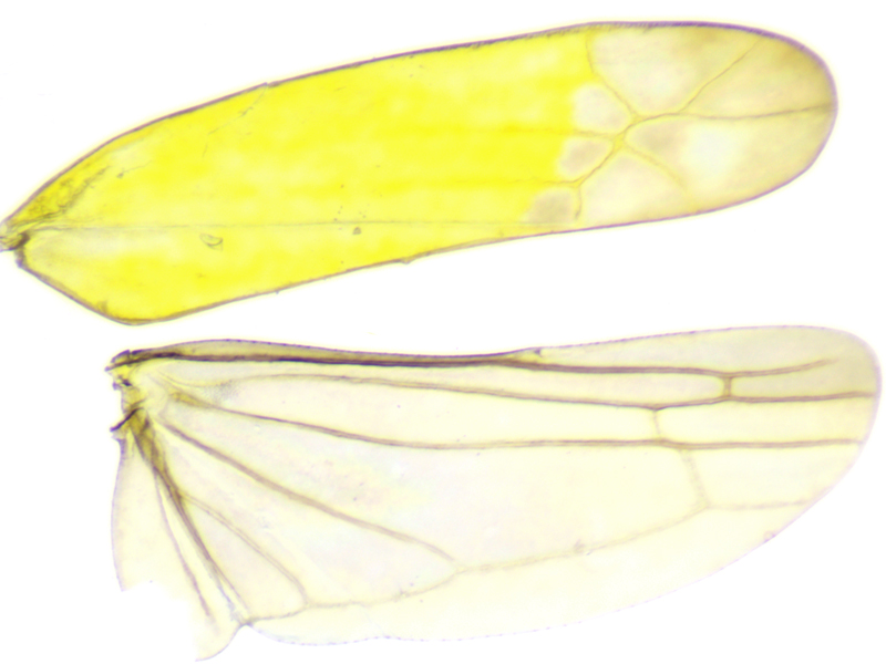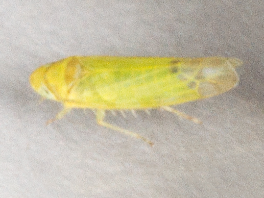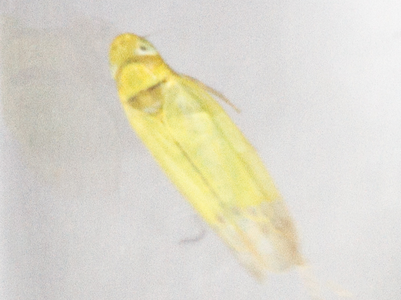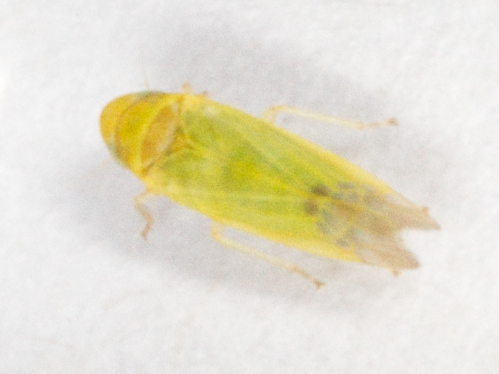 This was swept from Bracken. The wing venation (both forewing and hindwing) helps eliminate most other yellow leafhoppers. The abdomen is mainly blackish which makes the semi-opaque wings look a bit greenish-yellow.