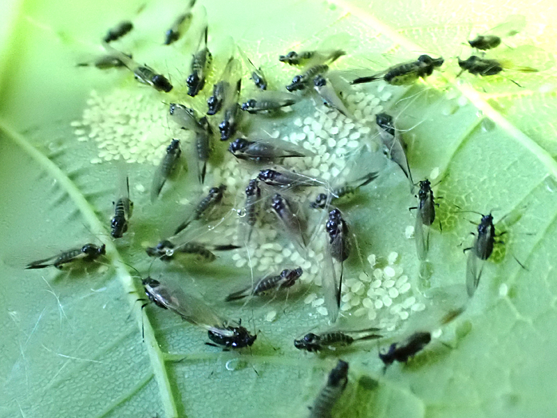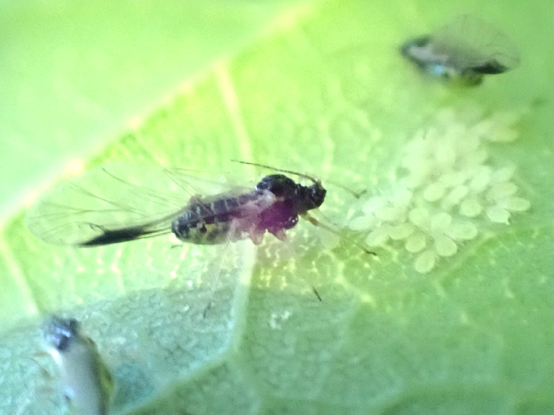 Like many other aphids, this species seems to have had a good year in 2025. What I initially took to be batches of eggs turned out on closer inspection to be tiny nymphs. The patterns formed by alates and nymphs seems quite distinctive.