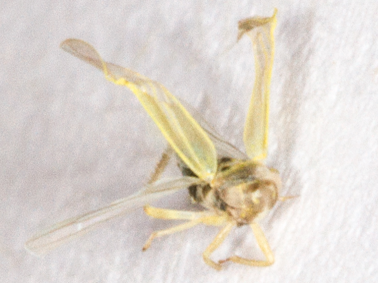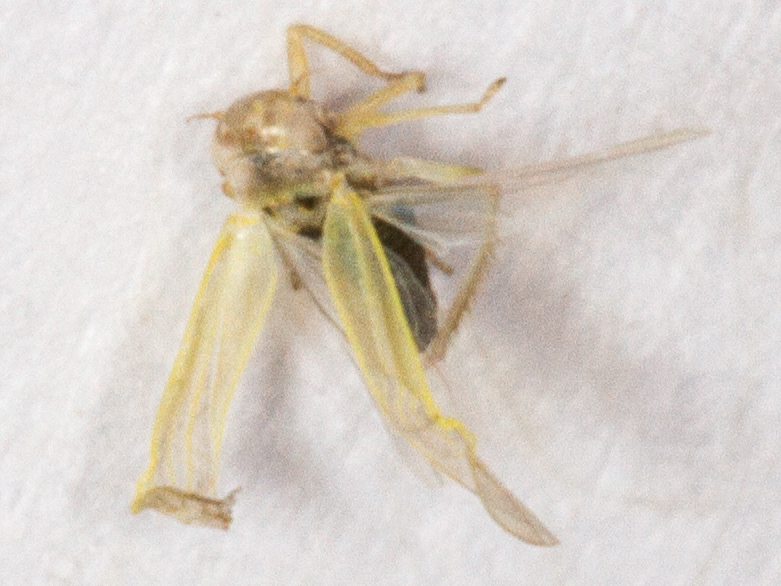 Described at the British Bugs website as, "An extremely common leafhopper, which is often abundant in rough grassland". In that case, it was high time it made itself known to me. This one came to light in an ex-arable meadow. The abdomen is mostly black which shows through the translucent wings. This small leafhopper was just under 2.8mm long.