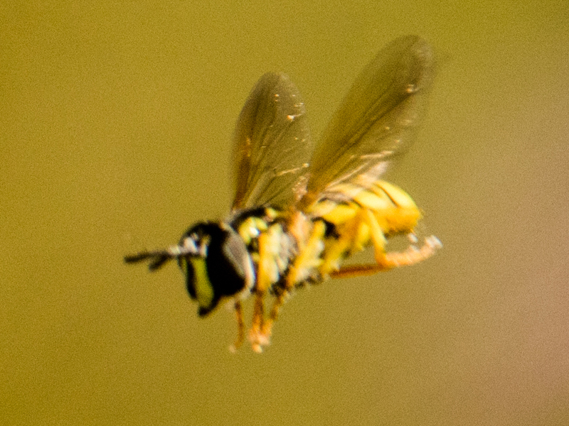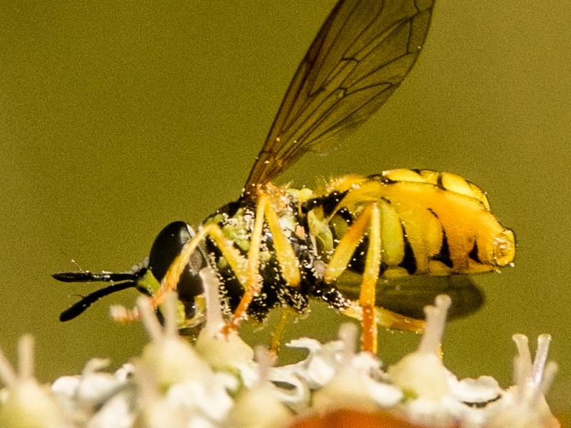 Although seemingly distinctive, this is one of several very similar species. I failed to catch this one but I think it is identifiable from the photos. Several of the photos show the even-width black bands on the base of the tergites which helps eliminate elegans but it is a little harder to make out the relative lengths of the first two segments of the antennae. After comparing it with photos of both species by Steven Falk, I think I can just see this clearly enough in some of the photos to rule out cautum and make this verralli.