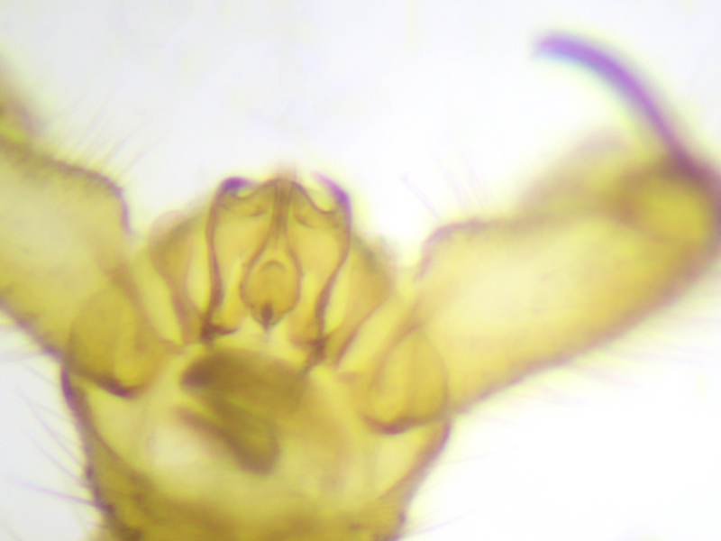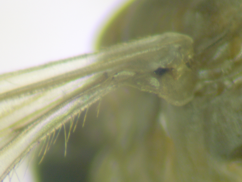 This was keyed using the Stubbs BENHS book. I forgot to check for tibial spines and erroneously jumped to subfamily Chioneinae where naturally I hit a dead end. I matched it to nemorale initially by comparing the genitalia to diagrams in the book, but then realising my error it keyed well enough once I used the subfamily Limnophilinae key. The key seemed to suggest that the anterior pits should have been darker and more obvious than they were. The wing was 6.0mm long.
