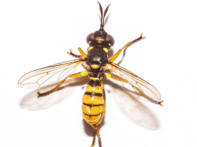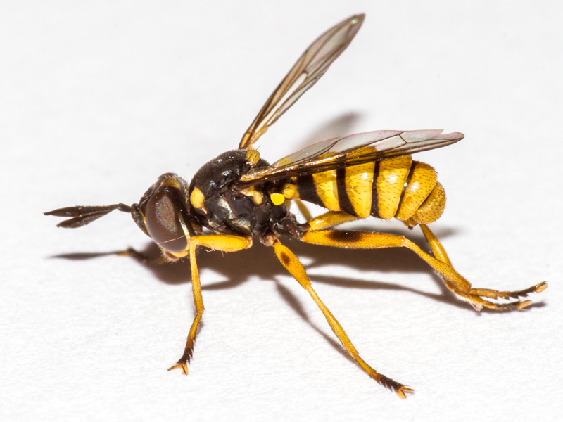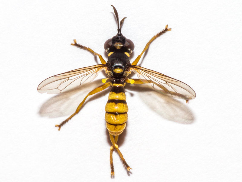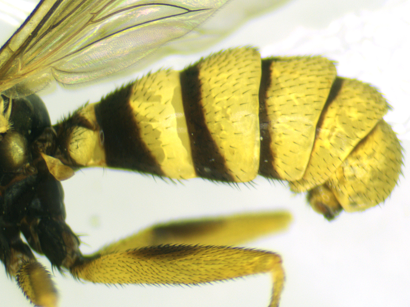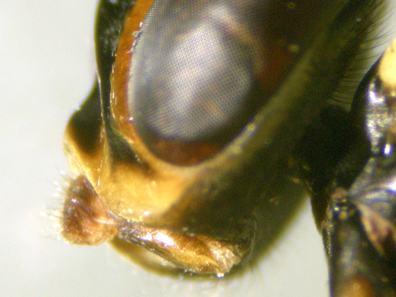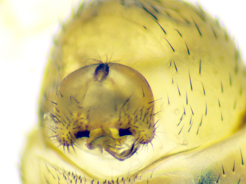 This came to light and initially I had no idea what it was. It had what looks like a vena spuria which caused me to think it must be a hoverfly (Syrphidae), although this was not as long as the vena spuria of hoverflies. Having failed to find anything similar among the hoverflies I came across some images of very similar-looking Conops flies and looked for a Conopidae key. Mike Hackston's key seemed to lead to Leopoldius brevirostris, especially because of the pair of thick black lines down the frons, but the dark dorsal patches on some of the femora were potentially problematic as brevirostris usually lacks these (unlike the commoner signatus). Moreover all accounts seemed to suggest this was quite a rare species, so the chances of me having made a mistake seemed high, although the date (July) did support the ID as being brevirostris as signatus flies later in the year. I wasn't entirely sure which bit of the fly was the epandrium, or how this was best viewed, so I contacted Mike for clarification.