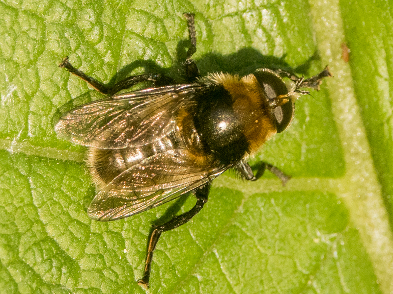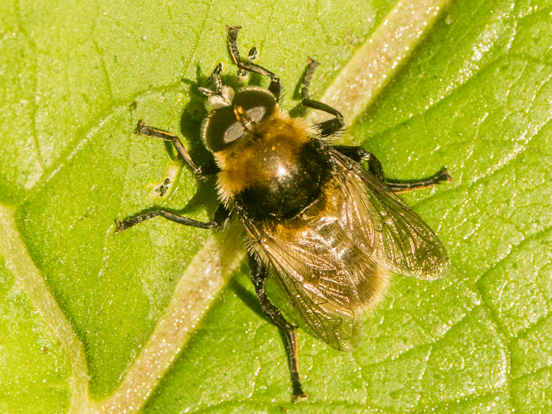 A month later I found my own. I didn't identify it in the field or retain it, so hoped the photos would prove sufficient for an ID, which they did. The loop in vein R4+5 is just visible and the hind legs are wholly black (base colour - the tibial hairs are orangey).