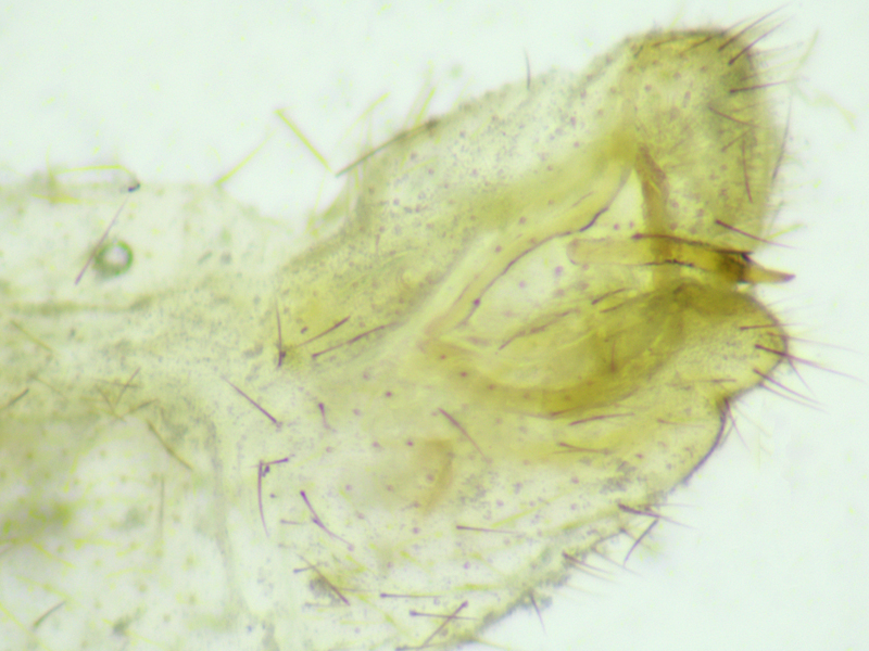 It's not usually necessary, but sometimes it can be easier to see the abdomen shape if you clear it in potassium hydroxide first. This is especially so if you're looking at a dried-up dead specimen. There don't seem to be any consistent differences in the abdomen shape (or internal genitalia) between this species and lucasina, but it is important for separating pallida.