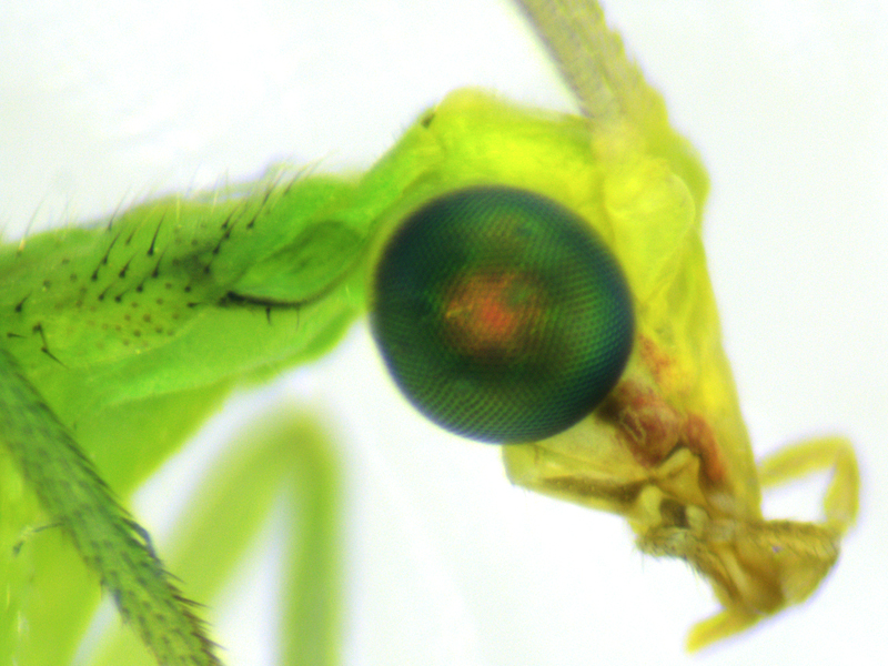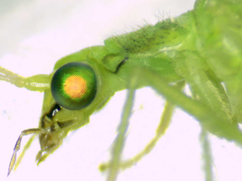 female Chrysoperla lucasina showing side of head, abdominal membrane, forewings, costal hair length and tip of abdomen, North Elmham (Norfolk, UK), 26th July 2025