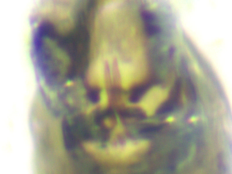 In the above image the parameres diverge slightly more than you might perhaps expect but you could be forgiven for identifying the next individual as pineticola based on the parameres. However the tips of the ectoprocts clearly pointed to psociformis.