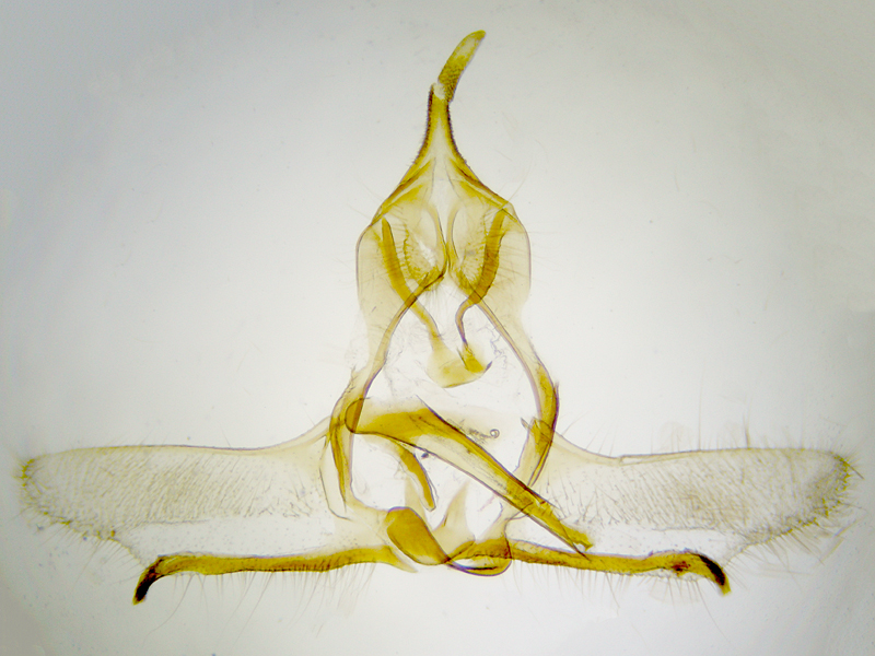 Judging from the images at the Moth Dissection website there is some variation in the length of the sacculus in males. The aedeagus is distinctively long and straight.