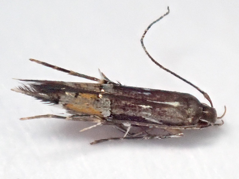 This species is now being found regularly in Norfolk but mainly as leaf-mines - there are still (up to 2025) only a handful of records of adults. This one was caught by Joe Harkness at Reepham and passed to me to confirm. It was dead by the time I got it hence the lifeless photos.