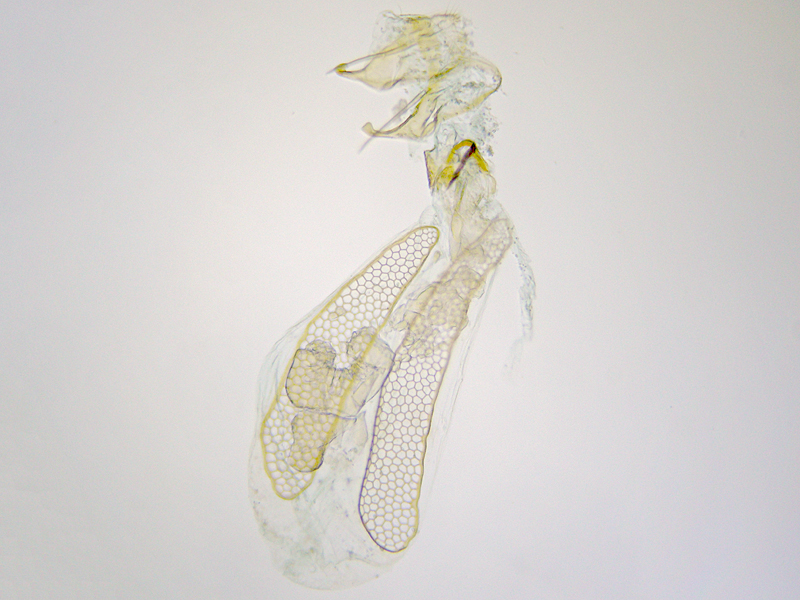 I first saw this species at Holkham in June 2016 when several were netted flying around Holm Oaks at dusk. As they were shown to me by someone else I didn't manage to get any photos. The following is the first adult I've identified since then, and was identified by examining the genitalia. My understanding (but I'm always willing to be corrected) is that the following in combination only occurs in heringella: 1) signa long, occupying nearly the whole of the corpus bursae, 2) signa wide, 8 reticulations across at the widest point, and 3) comparatively narrow margin to signa (cf. e.g. subbimaculella). The ductus seminalis is also supposed to be narrow but I'm not sure I can make that out. When I examined this I was also examining what I think was Broken-barred Oak Dot Ectoedemia subbimaculella, and the difference in thickness of the margin was striking. It's obviously difficult to measure such tiny distances but I made the margin of the subbimaculella signa somewhere in the region of 8μm and the margin of the heringella signa around 3μm.