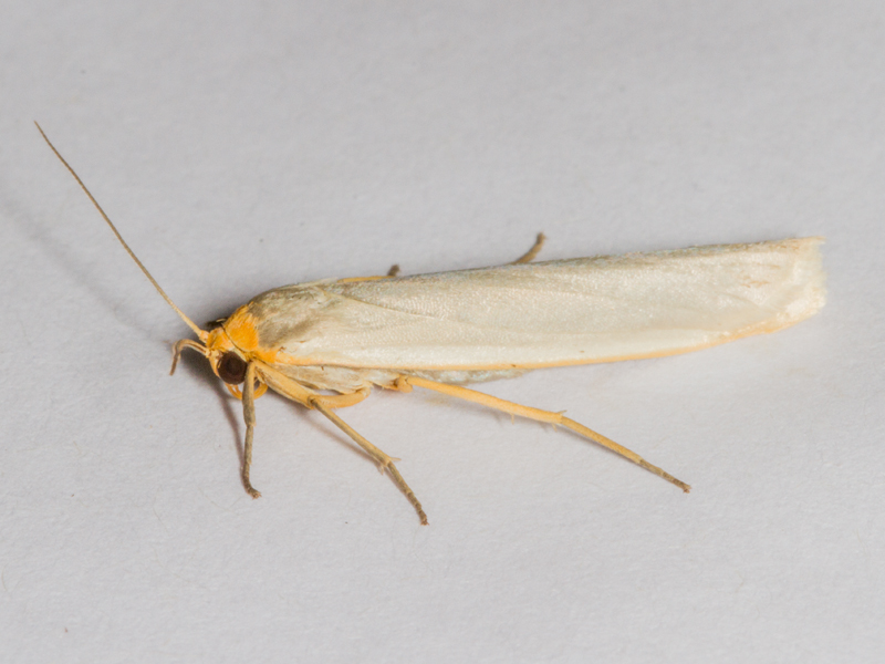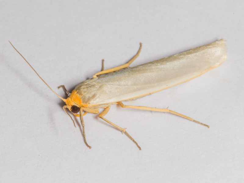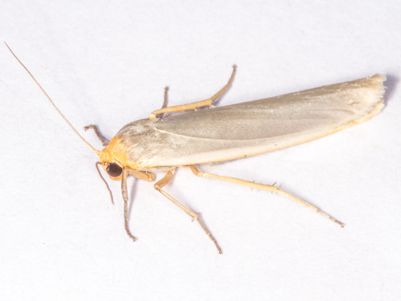 I had to wait until 2025 before I caught one myself. It wasn't particularly pale (just how pale varied according to the angle - my photos seem to have all captured it at its palest), and its hindwings were not particularly whitish either - I've had Scarce Footmen with much, much whiter hindwings. But even so, I was sure it would prove to be Hoary upon dissection and so it did.