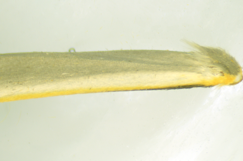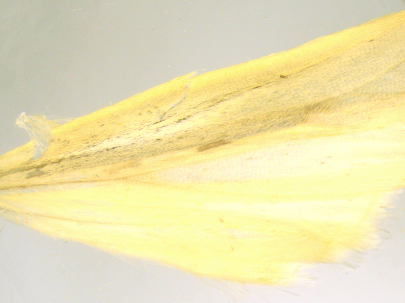 This individual, the third for Norfolk, was trapped by Laura King and looked quite unlike any Scarce Footman I have ever seen. Firstly the wings were pale silvery, contrasting with the yellowy foreparts like a male Ghost Moth. The yellow seemed to extend further back across the head than on Scarce Footman, and a short distance down the sides of the wings. This made me consider Buff Footman, but the shape (and colour) was all wrong and the broad yellow didn't extend so far down the wings. The wings weren't rolled in so tightly as they normally are on Scarce Footman (though more so than on, say, Common Footman) and the moth was noticeably small - so much so that when David N saw it we had a discussion about whether it could be Pigmy Footman. Examination of the genitalia appear to confirm that it is a Hoary Footman, the first for the vice county. I have not been able to find any images or descriptions of female Pigmy Footman genitalia, so in the event that these have similar genitalia then that species is only eliminated on external characters - I think these are clear enough.