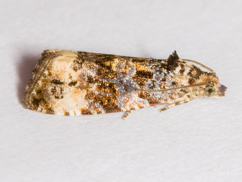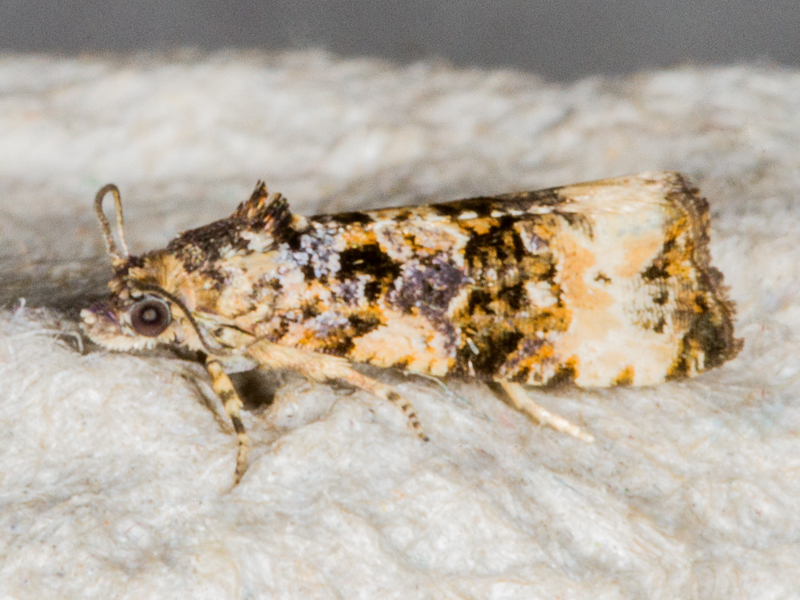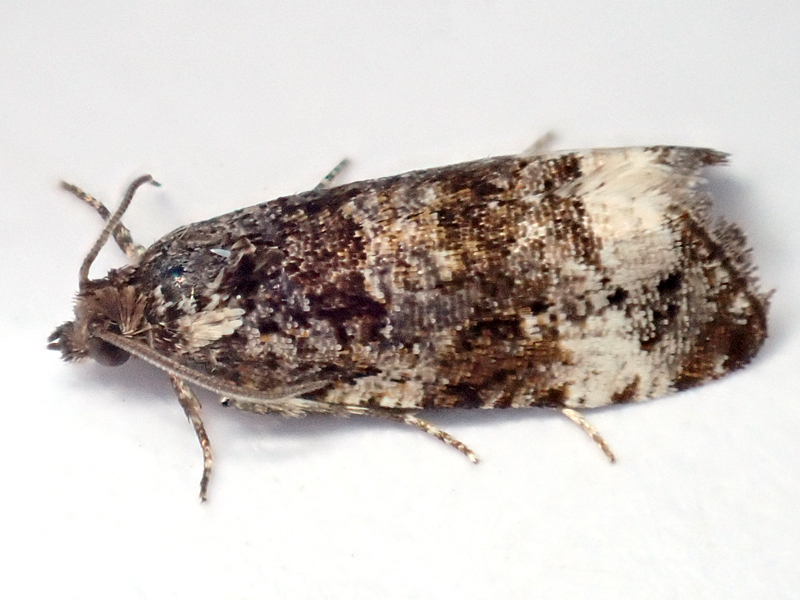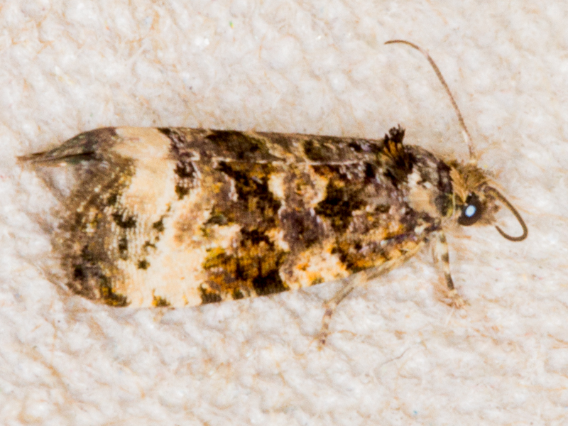male Bordered Marble Endothenia marginana showing hindwing, Hoe Rough (Norfolk, UK), 25th July 2023