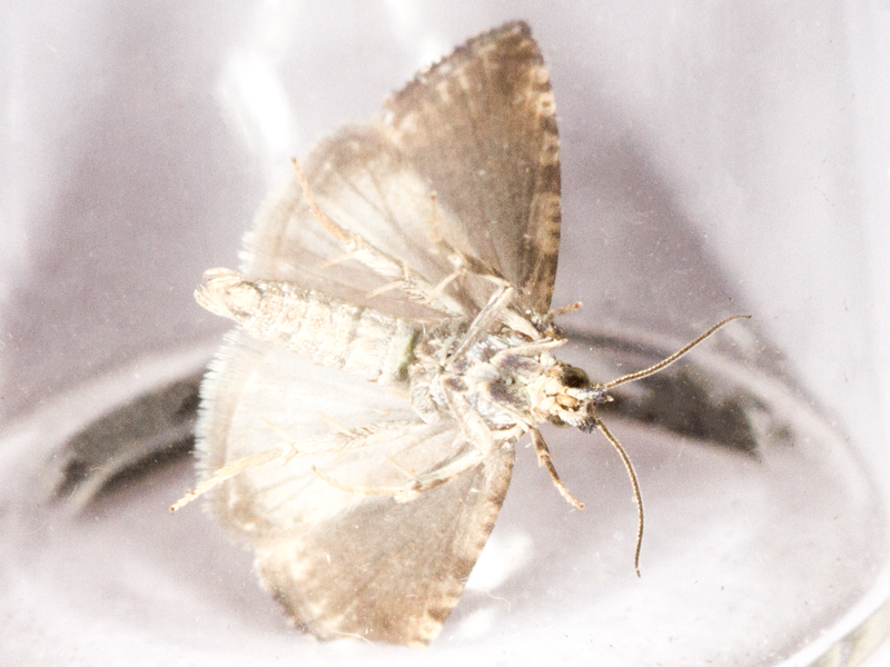 The two photos of the live adult were taken with different cameras and the first has come out looking much browner than the second. I think the true colours were probably somewhere in between. The hindwings were probably sufficient to clinch the ID but they weren't as clear as they can be so I checked the genitalia to make quite sure.
