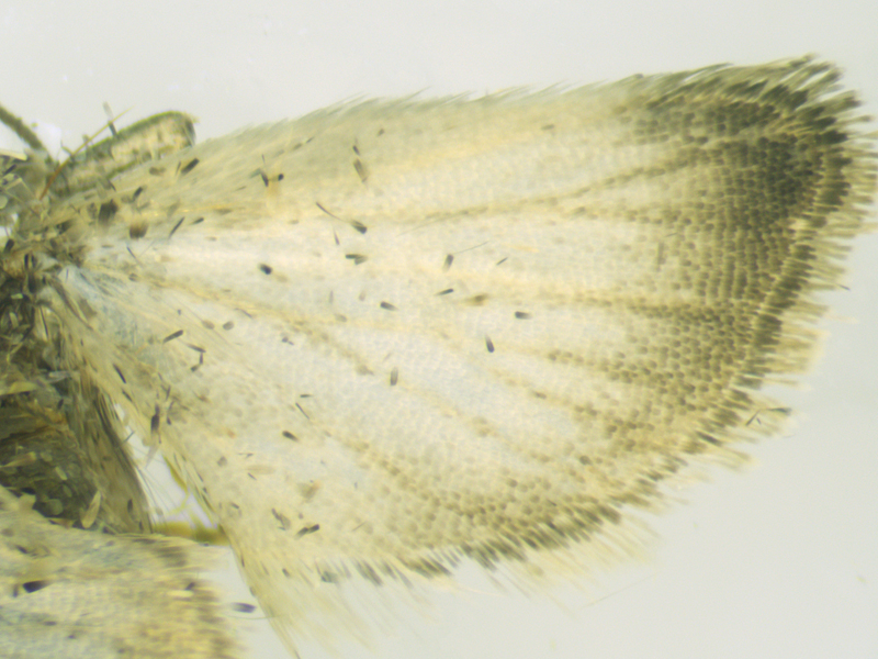 male Bordered Marble Endothenia marginana showing hindwings and genitalia (with close-up of uncus), Wendling Beck Environment Project (Norfolk, UK), 8th September 2023