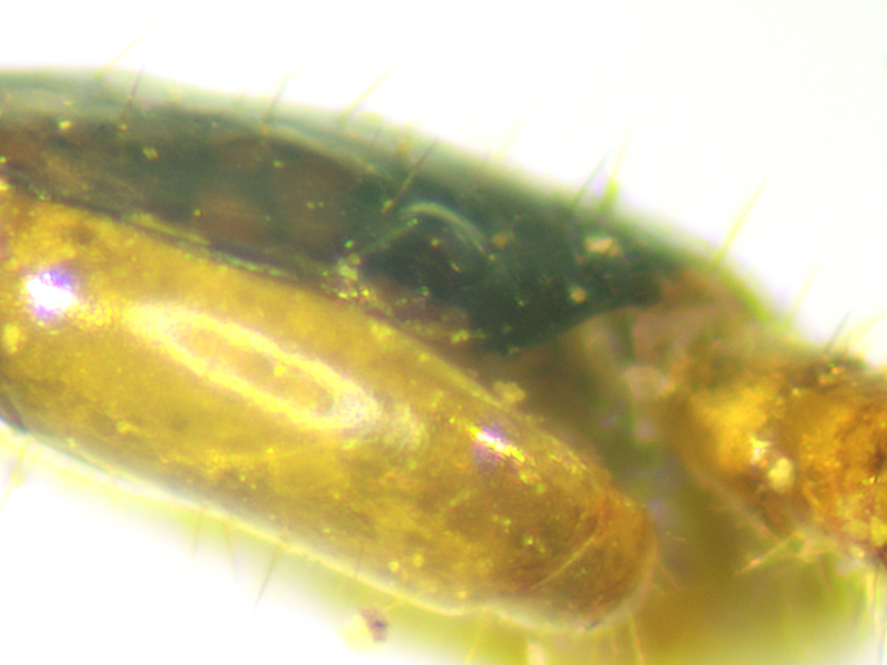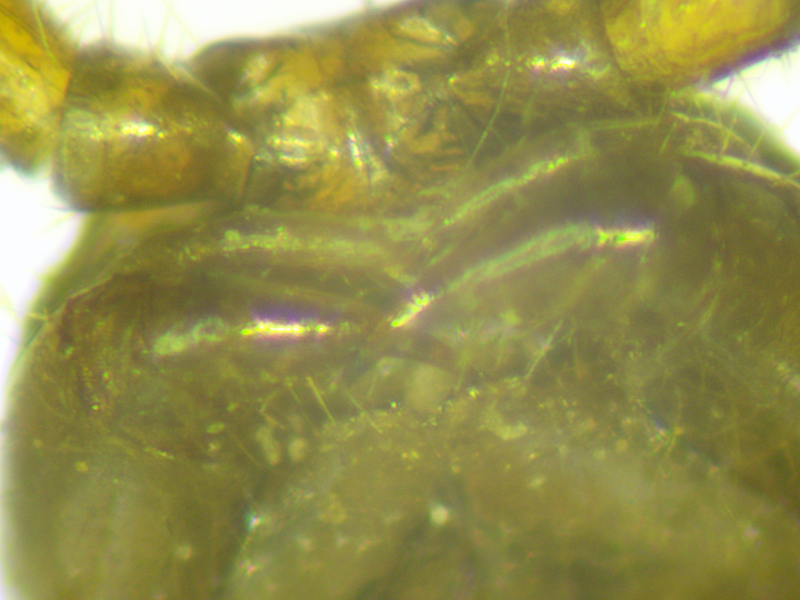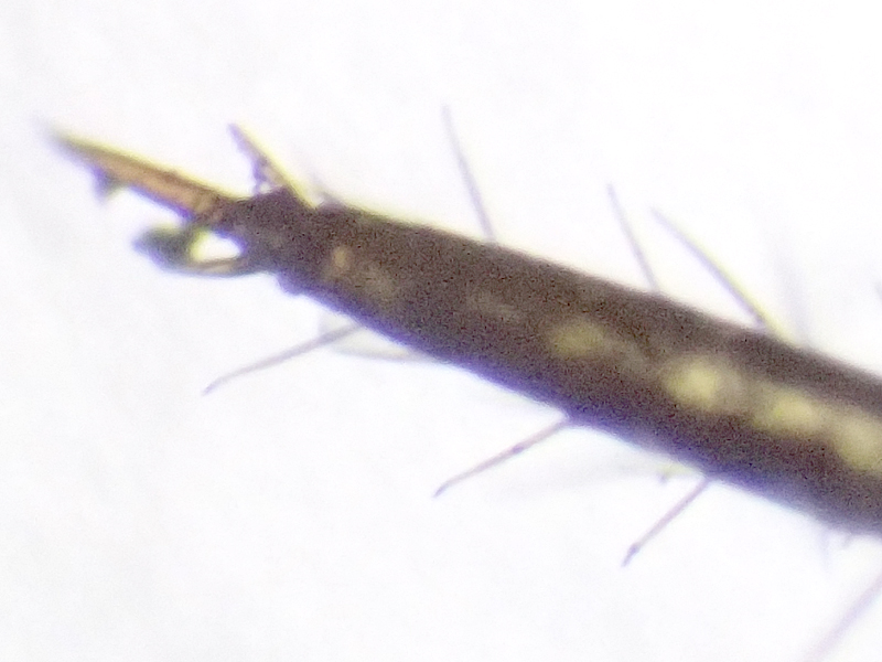 These was keyed using the AIDGAP key by Barber. One was already dead when retrieved from the pitfall trap and the other nearly so, so neither presented themselves well for a photo shoot (but at least they didn't run away). When I examined them both were dry and I couldn't straighten them without breaking them so don't have an accurate measurement of their length: the first was 7.1mm (excluding appendages) in its slightly curled state so I'd guess it was no more than 8mm or so in life. I noted from the BMIG website that there is a second Lamyctes species in the UK now and attempted to eliminate this by counting the antennomeres. That proved harder than I thought (not least because both only had one complete antenna): I'm pretty sure they both had more than 25 antennomeres (the best one seemed to be 26 or 27 depending on whether it had one long but slightly broken apical antennomere or two shorter ones). However, both had two pairs of three forcipular coxosternite teeth which seems to rule out the very unlikely africanus.
