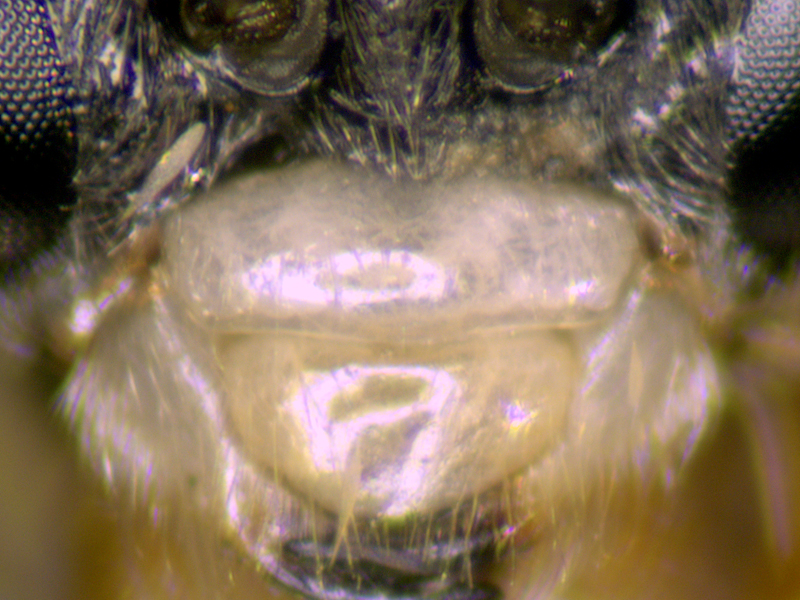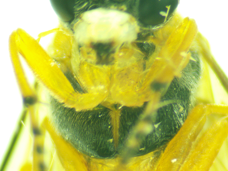 male Athalia cordata showing frontal hair, clypeus and antennal base separation, tarsal claws and relative antennal segment lengths, North Elmham (Norfolk, UK), 18th July 2022