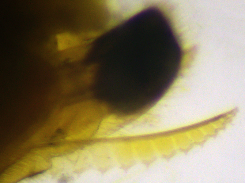 female Athalia cordata showing tergite 1, top of head, clypeus, hind basitarsus & tibial spine, hind claws, underside of thorax and saw, Gressenhall Farm and Workhouse (Norfolk, UK), 29th August 2025