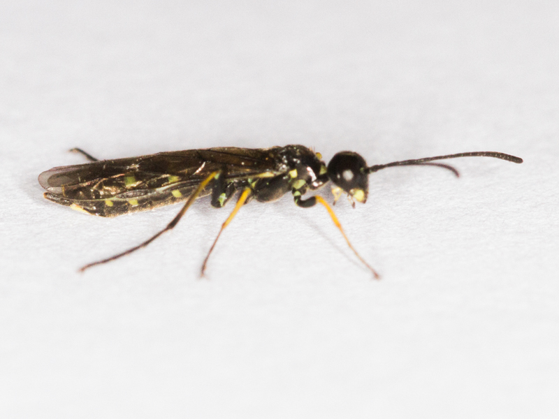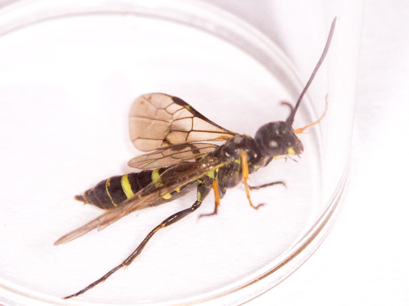 female Wheat Stem Borer Cephus pygmeus showing antennal segments 1-4, claws, relative distances between antennal sockets and tentorial pits and sawsheath, Foulden Common (Norfolk, UK), 27th May 2023