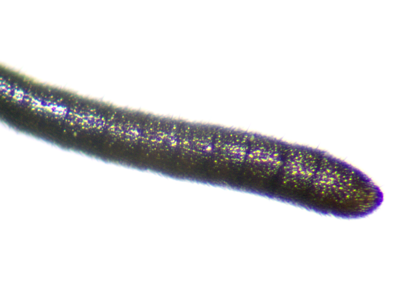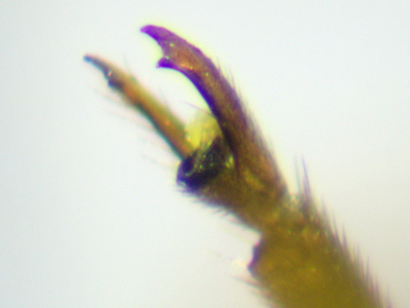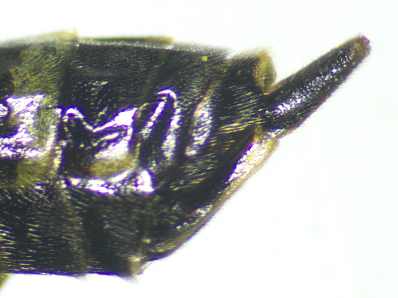 female Wheat Stem Borer Cephus pygmeus showing antennal segments 1-4, claws, relative distances between antennal sockets and tentorial pits and underside of abdomen tip, Foulden Common (Norfolk, UK), 27th May 2023