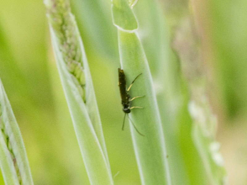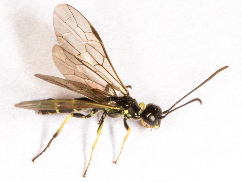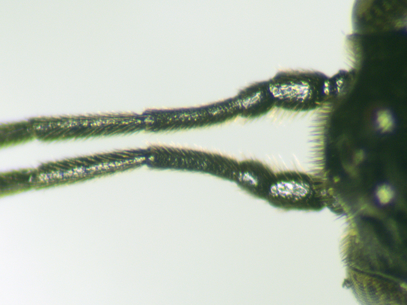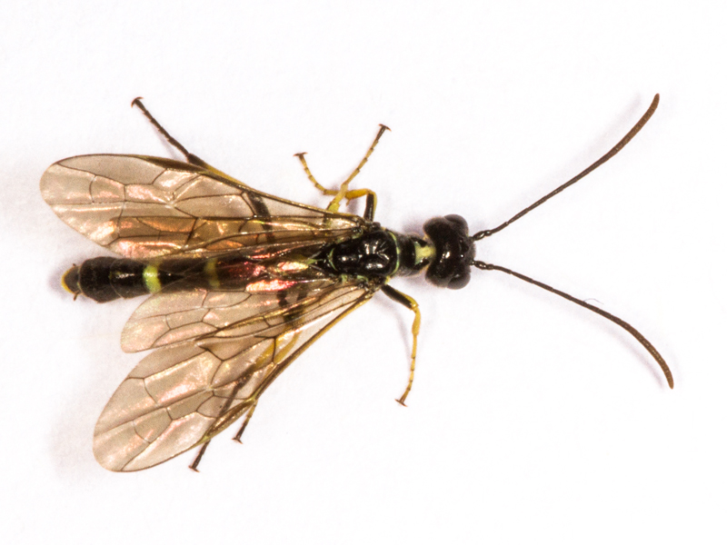 I recognised this in the field as being likely to be a Cephus species, and as soon as I examined the specimen I realised it resembled spinipes rather than the one I'd seen several times previously, pygmaeus. The antennal segments were all longer than wide, the tarsal claw bifurcation was short and almost perpendicular and (although it seems to be more a feature for females) the hind tibia were yellow apart from a dark apical ring. So in a way the ID was easy, but first I needed to make sure it certainly was Cephus and not one of the other genera in Cephidae (or even another family). ObsIdentify seemed to favour Calameuta pallipes. I didn't think it was, as photos online show a different abdomen pattern, but I needed to make sure - and that's where it became complicated.