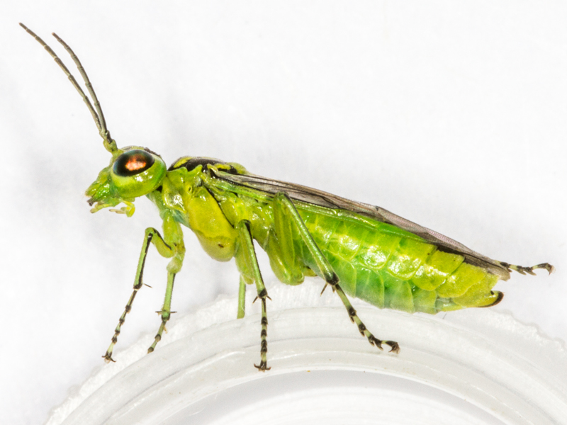 female Rhogogaster scalaris showing forewing, hindwing, head from in front, head obliquely from side/above, top of abdomen and saw teeth, Wendling Beck Environment Project (Norfolk, UK), 27th May 2025