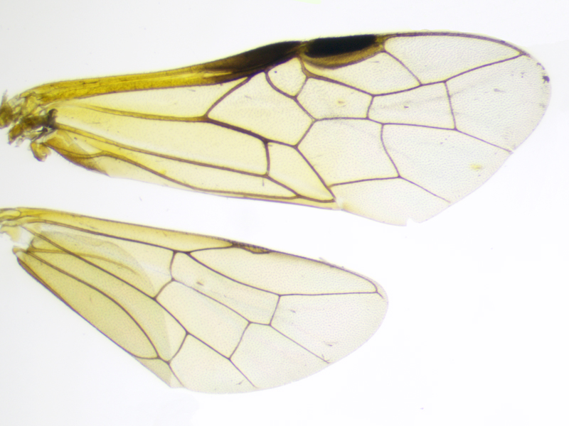 male Selandria serva showing right wings, left forewing and aedeagus, Hoe Rough (Norfolk, UK), 18th June 2024